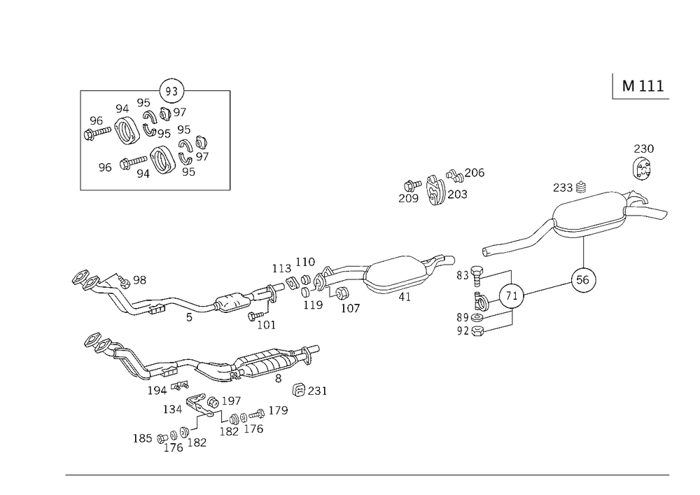 Thread pitch: 1mm. Bracket to exhaust pipe. Front exhaust pipe to exhaust manifold m8x60. Front exhaust pipe to muffler with central pipe. Front exhaust pipe to sliding fit, center. Front right exhaust pipe to front exhaust line. Front exhaust pipe to rear exhaust pipe. - Condition: New